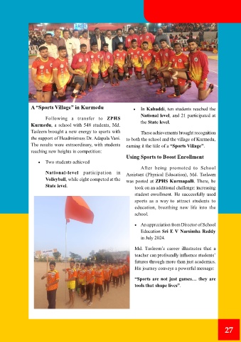 A “Sports Village” in Kurmedu · In Kabaddi, ten students reached the